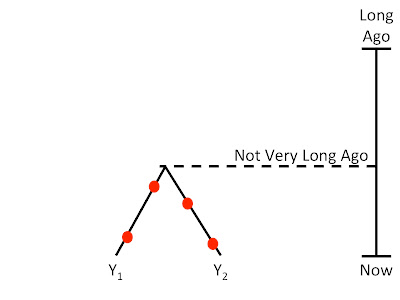 Similarly (although with a bit more math), when tracing back the Y common ancestor and the mtDNA common ancestor, we should not be surprised if their TMRCAs are different, nor if they overlap.